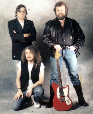 etwa 1984 mit Urs Huwiler, Bass, und Jack Rousselle (Frankreich) am Schlagzeug bei einer Heavy-Metal-Parodie.